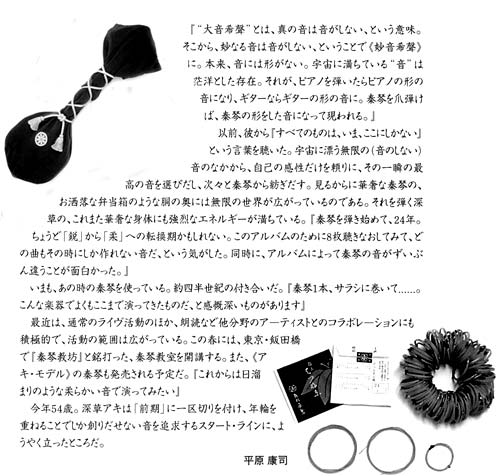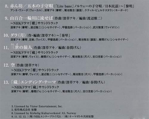 中国古代からの大陸の記憶が聴こえてくる「秦琴 しんきん」。その繊細で幻想的な楽器で織り成す、「深草アキ」心音の軌跡。初の集大成。初CD化『蓮華燈籠』(泉鏡花 作・戯曲「海神別荘」のイメージ曲)収録。