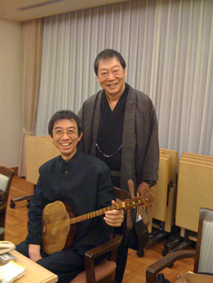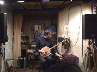 チョット遅れましたが11月のライブの報告を少し。演劇倶楽部「座」の“語り”との共演も楽しく終わりました。壤春彦氏率いる「座」との縁は已に10年程になります。壤春彦氏自身は蜷川演出の演劇に常連の様に登場している名うての名役者ですが、今は演出の方が多いそうです。彼が立ち上げた「座」は様々な小説等を脚本化せずそのまま朗読し、それにあわせて劇をするという公演をしています。「詠み芝居」といいます。最初の取り組みが上田秋成の『雨月物語』でしたが、人の出会いの縁あって 最初から生演奏で参加しました。秦琴の音がこの不思議な物語によく合いました。それ以来『雨月物語』の再演や、泉鏡花『高野聖』等いつも生演奏で参加しています。
