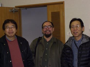 滝口さん、福田君に菊池さん。今回の私達グループ。なんか皆けっこうごっついねぇ。とくに真ん中の福田君、とってもスタッフに見えない・・ムムム・・・・。福田君はこの後一旦東京にもどり、またとんぼ返りで来るという強行スケジュールでした。おつかれさまです〜。次の「西光寺」コンサート、がんばろう!