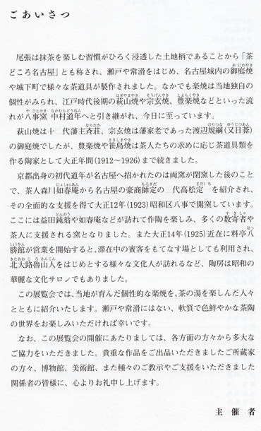 「名古屋の楽焼ー八事窯・中村道年へのあゆみ」展は6月27日まで開催されています。機会あれば 是非足をお運び下さい。