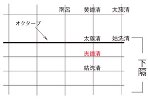 (注):ここの記述は上記で書いた通り、(下)となっているが(上)の誤りである。もし(下)が正しいのならば、弟四番目の“太蔟清”は下隔になってしまう。